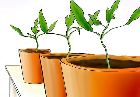 Transplant the seedlings. Place each seedling into its own individual quart size container of potting soil. The separated plants will still need about 8 hours of heat and sunlight on a daily basis in addition to daily waterings.
