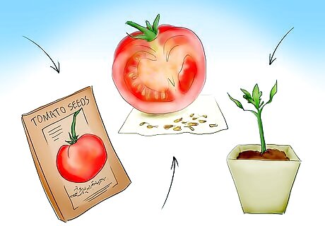 Select a seed variety. Tomatoes can be grown from dried packaged seeds, fresh seeds preserved from a cut tomato, or seedlings that are available in local gardening centers. Dried and fresh seeds require the most work to grow, but can be the most fulfilling. Planting seedlings is the easiest way to grow tomatoes.