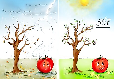 Know when to plant. Planting tomatoes must be done at a specific time of the year for the best results. Because tomatoes are sun loving plants, they grow the strongest in late spring and summer. Plant tomatoes at least two weeks after the most recent frost, or when nighttime temperatures do not drop below 50 °F (10 °C) and daytime temperatures stay below 90 °F (32 °C). If you are starting your seeds indoors, plan to do this 6-8 weeks before your expected transplant date. If you want, you can purchase a soil thermometer to check the soil of your garden for the ideal planting time. Soil that is about 50 °F (10 °C) is ideal for planting, but this may not happen in conjunction with better weather; test your garden to play it safe. A farmer’s almanac is a handy tool for finding out the best planting time. You can look at the farmer’s almanac online or purchase a copy for your area.