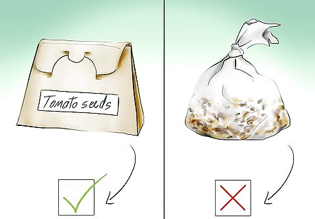 Store your seeds. After they have finished drying, store your seeds in a paper envelope until they are ready to use. Avoid storing the seeds in a plastic bag or container, as these don’t allow as much air ventilation and are more likely to produce bacteria and mold in your seeds. Make sure to label your seeds with the plant variety and year as soon as they are dry.