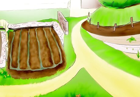 Plant your seeds. Create rows in your soil for seeds to be dropped in. Each seed should be planted two inches away from the next nearest seed. Lightly cover each planted seed with a bit of soil pinched together over the top, and follow with a bit of gentle watering. If you are planting more than one variety of seeds, plant each type in its own individual row and label each row. When the plants begin to sprout, it will be very difficult to tell them apart otherwise.