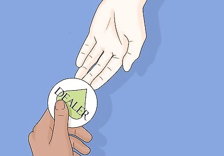 Pass out the dealer button to one of the players. Like in Pot-Limit Omaha, Omaha Hi Lo has a dealer button that gets passed around clockwise throughout the game. When you’re playing at home, the person with the dealer button is responsible for dealing out the cards at the beginning of that round. If you’re playing Omaha Hi Lo at a casino, the dealer will always be the casino employee who’s working at the table. However, the dealer button still gets passed around to determine who goes first.