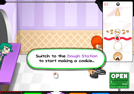 Go to the DOUGH STATION. This is a purple button with a cookie on it. You can choose and top your cookie dough here!