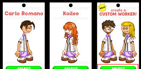 Choose a character or create a custom character. By default, you can choose to play as Carlo Romano or Koilee. If you don't want to play as either, though, you can click SELECT under "create a CUSTOM WORKER!". You'll then be brought to a menu where you can choose the gender, hair, bangs, height, posture, smile, eyes, weight, etc. On most versions of the game, you can't choose a name to prevent inappropriate names. Most of the time you'll have to stick with "YOU" as a name.