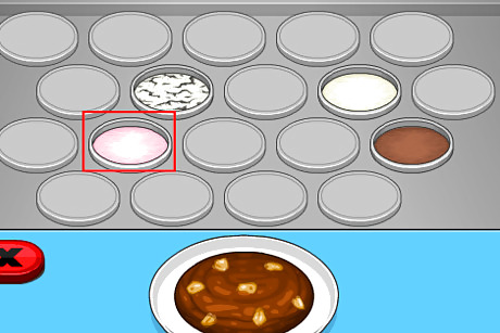 Choose the appropriate cookie dough. On the order ticket, the cookie's color indicates its dough flavor. Match the color of dough on the order ticket to the color of dough in the kitchen.