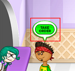 Go to the ORDER STATION. This is a green button with an order ticket on it. You can take orders here!