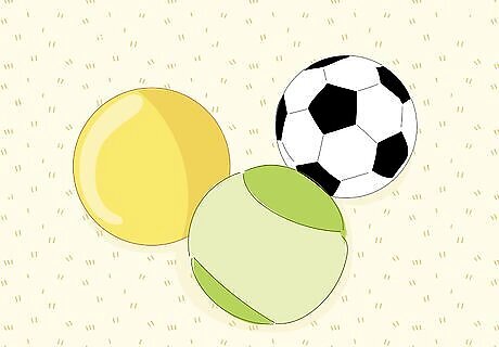 Scatter a variety of balls. As your baby begins to roll and crawl a little, they'll enjoy other things that move. Give your baby cloth, rubber, or plastic balls in different sizes. They'll learn how to push, grab, and roll the balls as they play. Ensure that the balls are at least 1.75 in (4.4 cm) in diameter so your baby won't choke on them.