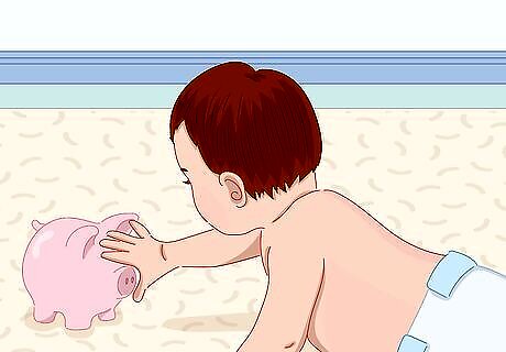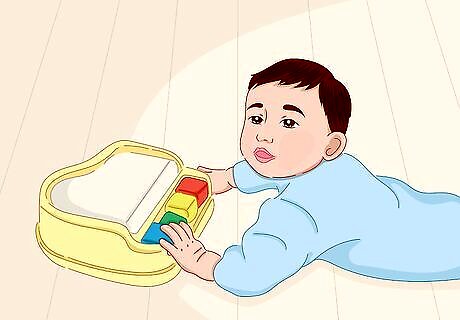 Get your baby to crawl to toys. Many babies begin to crawl or pull themselves a little by the time they're 6 months old. To encourage this development, put them on their tummy and set a few fun toys just out of their reach. Encourage your baby to reach and grab the toy. For example, say, "Where's the ball? You can reach the ball!"