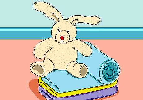 Put out blankets, soft dolls, and stuffed animals. Soft items are good playthings for a young baby since they can snuggle, grip, and gum on them. At this age, the baby may begin to prefer 1 or 2 of these soft items and become attached to a "lovey". Wash the soft items frequently, especially if the baby puts them in their mouth. Don't give the baby items that have wire features, small buttons, bells, ribbons, or anything that the baby could pull off and choke on.
