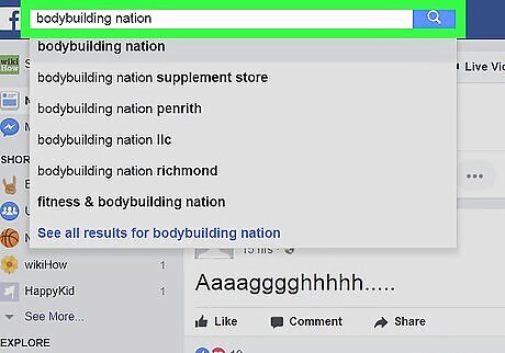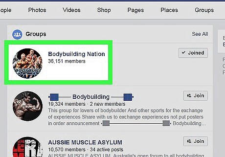Search for the group. Type its name into the search box at the top of the screen, then click the magnifying glass icon (in the search box). A list of results will appear. Depending on your settings, you may also see the group’s name under “Shortcuts” on the left side of the screen.