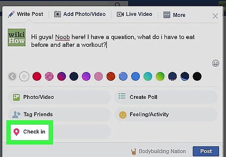 Click Check in to include a location. This is another optional feature that adds a link and map of your current location to your post.