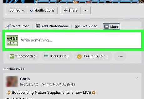 Click Write Something…. It’s the white box just beneath the group’s cover image in the middle panel.