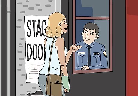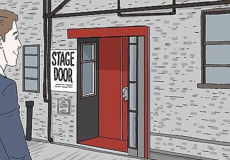 Locate the stage door before the show. If you can, either arrive to the performance a bit early or take a trip to the theater a few days before the show, and look for the stage door. Sometimes, this door is labeled “stage door”, especially if it is a Broadway theater, and other times it may not be. If you go to look and are still unsure, or are unable to take a trip to the theater ahead of time, call the theater you’ll be going to for the show, and ask for the location of the stage door.