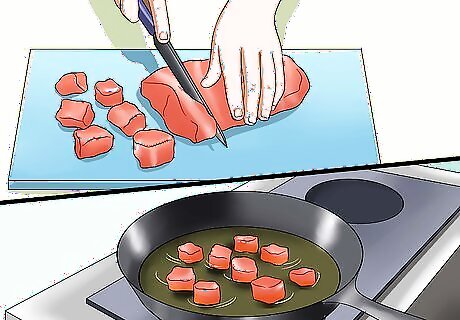 Prepare the meat. Wash your hands and trim the meat of any fat, tendons, skin, or bones. Chop the meat into bites that your dog can manage (larger bites for larger dogs and smaller bites for smaller dogs). Cook the meat in a little bit of oil over medium heat until it's completely cooked.
