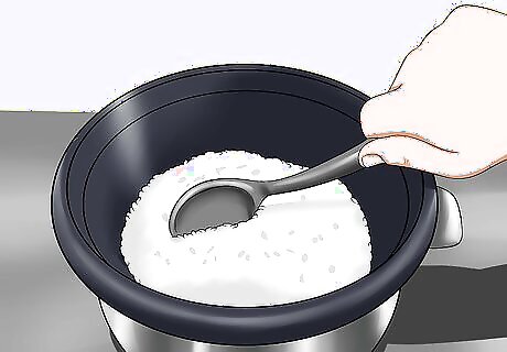 Prepare the rice or carbohydrates. Depending on how many meals you're making, cook a small amount of rice (for one meal) or a pot of rice that you can use for several meals. Once the rice is completely cooked, set it aside while you prepare the rest of the meal. If using other vegetables as the source of carbohydrates, be sure to cook them well. Good carbohydrates include: Sweet potato Lima beans Apples Peas Lentils Garbanzo beans