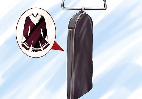 Start airing out your dress. Take it out of the dress bag and closet and lay it outside.If your dress has panels, place it flat on a table and put books on the panels to make them flat and stiff. Make sure it is in a safe place,though.