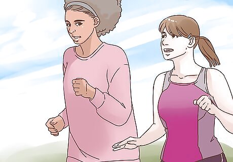 Get the right shoes. The correct shoe will support your ankle, lock your heel into place, and give your toes enough room to wiggle around. Long-distance running shoes – anything over a 5k – are heavier because of added comfort. If you’re training for a shorter race, look for lighter-weight racing shoes to increase speed. Each foot is made up differently. Experts can help you determine your unique foot characteristics to find shoes that support weaker areas. Your shoe should not just be on your foot, but part of it. Feet grow and change in small but significant ways with age, so don’t presume that a 3-year-old pair will fit even if they’re still in good shape.