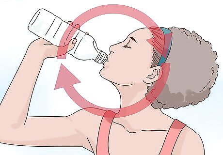Drink lots of water. Without proper hydration, your training schedule can quickly fall off-track. Your recovery time will take longer, your muscles will burn deeper, and your drive and dedication will most likely falter. When running long distances during training, you should drink water at least every 20-30 minutes, or more if you need it.
