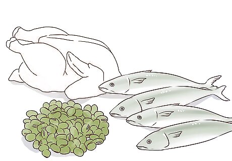 Eat a well-rounded diet. Limit the number of processed foods you eat, like candy and fast food. Instead, focus mostly on fresh foods that don’t have a nutrition label – things like fruits, vegetables, and fish. Good sources of healthy complex carbohydrates include quinoa, brown rice, and whole-grain pasta. Chicken, fish, eggs, and legumes are all great sources of protein. Healthy fats consist of all kinds of nut varieties (pistachios, peanuts, almonds) as well as avocados and olive, canola, and coconut oils. Eat a snack high in carbs and protein within an hour after finishing a run to replenish energy quickly.