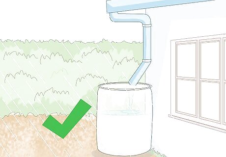 Install water butts to help collect seasonal rainfall. This is helpful because you can utilize rainwater to water your plants, rather than always using water from your spigot. To install, place your water butt on a firm, flat surface, and measure the height of the butt and cut the downpipe to your measurements with a hacksaw. Then, place it against a wall under a downpipe. Once installed, the water butt will collect rainwater to distribute over your garden. Alternatively, you can cut a notch out of the downpipe and connect a rain trap to the pipe to transport your water. Rain barrels may also be a good option to connect to a downspout.