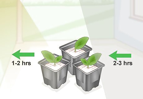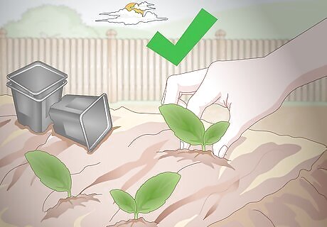 Harden off seedlings before you plant them outside in your garden. “Hardening off” is when you slowly adjust your plants to the outdoor environment. The process usually takes about 1 week. On the first day, set your seeds in a shady area outside for about 2-3 hours. Try to place them in a spot without much wind. Then, over the next few days you can gradually increase their time outside by 1-2 hours. This helps your plants adjust to the temperature fluctuations and windy conditions. Do not leave seedlings outdoors overnight until you have finished the hardening off process.