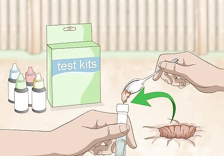 Test your soil to determine its nutrient composition and pH level. Purchase a test kit, and dig up about 1–2 tablespoons (15–30 mL) of dirt from the top 2-4 inches of soil to use as your sample. Fill your soil up to the indicated line in the test chamber, and add distilled water with a dropper. Wait 1-2 minutes for the soil test to complete. Do this for both nutrients and pH levels. To determine the levels, check the color of the indicator and match it with the key on your test kit. To make your soil more acidic, add sulfur, aluminum sulfate, or iron sulfate. To make your soil more basic, use powdered limestone or lime. If your soil is missing vital nutrients, add a fertilizer rich in that nutrient.