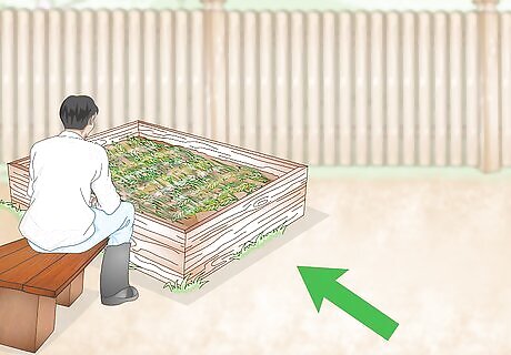 Establish a compost area in your yard. There are many ways you can make your own compost bin, or you can purchase a bin from a home supply store. Place your compost area on solid ground off the side of your yard, and lay twigs and straw a few inches deep. Then, add organic material like leaves, branches, and food scraps. You can also add manure and grass clippings. Then, cover your compost with a piece of wood or plastic. A compost area is beneficial because you can easily add rich nutrients to your garden without spending much money. Having your own compost also recycles your organic waste.