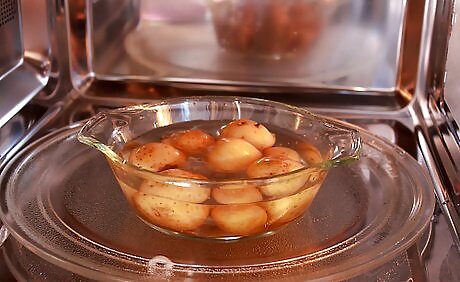 Cook fruits and vegetables. You can do this by steaming, grilling, roasting, baking, microwaving or frying them. They can be mixed with other ingredients including meats, pastas, rice and incorporated into breads and desserts.