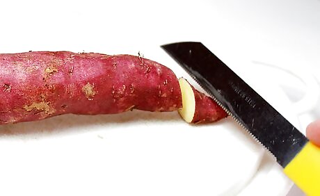 Prepare food for eating, storing or cooking by cutting off any unnecessary stems or roots. Trim the leaves off celery, shuck the husks off corn and remove grapes from their stems.