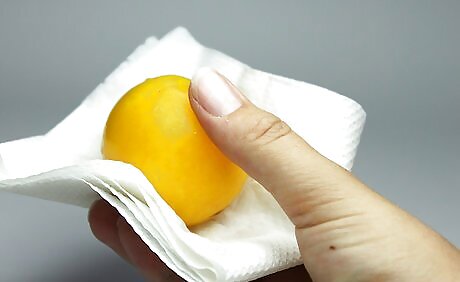 Dry the fruit and vegetables with a paper towel. Use the towel to lightly pat the produce to absorb any remaining water.