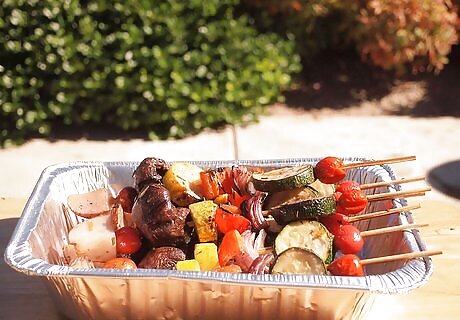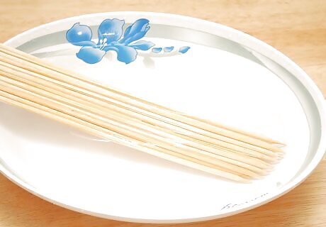 Soak about 12 wooden skewers in warm water 30 minutes before you intend to grill. You do this so that they don't break or burn when they are on the grill. If you are using metal skewers, you can skip this step.