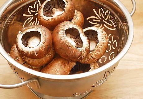 Remove stems from 15 to 20 cremini or button mushrooms.
