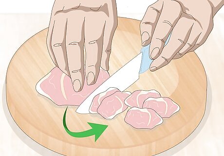 Cut your foods into uniform pieces. For the most nutritional value, cut your food into uniformly-sized pieces to ensure even cooking. This is especially important for large pieces of fish and meat, which are will cook much faster if they are in small, cube-sized pieces.