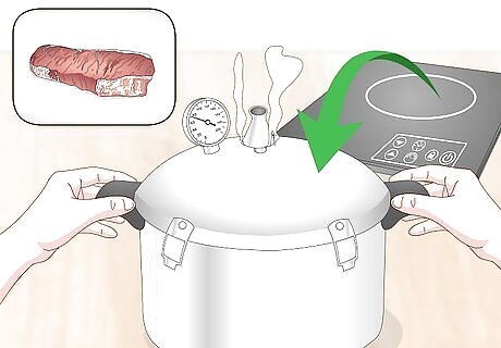 Start at high-heat and finish at low-heat to ensure stable pressure. If you're using a stove-top pressure cooker, always begin cooking at high-heat. Once you reach the necessary pressure, turn the burner to low-heat and let it simmer. Maintaining a stable pressure is crucial for proper cooking and nutrient preservation. If you're using an electric pressure cooker, you don't need to worry about heat—the appliance adjusts it automatically. To minimize burning on electric stoves (which have less burner reactivity), keep one burner on high-heat and one on low-heat. Once you reach pressure, move the cooker onto the preheated low-heat burner.
