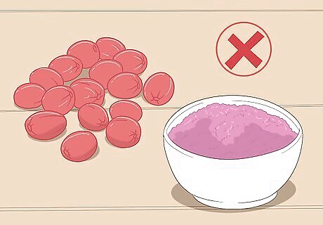 Cut red food dyes out of your diet. These dyes, especially red dye #3 (Erythrosine), contains high iodine levels. Investigate foods to see if they contain this ingredient, and avoid foods if they do. This type of dye is used in maraschino cherries and red or pink-colored drinks.