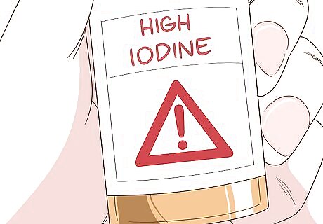 Avoid dietary supplements that contain iodine. There are some supplements that are very high in iodine. Always check the labels on any supplements you’re considering using and find the iodine content. Avoid supplements that are high in iodine. Most multivitamin supplements contain some iodine. Supplements that contain seaweed products do as well. If you aren’t sure whether a supplement contains iodine, ask your doctor or pharmacist.