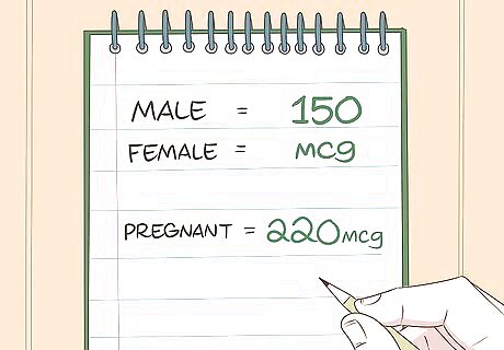 Limit your daily iodine intake to 150 mcg. This is the official recommendation for males and females over 14 years old. Monitor your iodine intake and keep your consumption within these levels. Read all the labels on the food you eat and measure the iodine content. Add up your daily total and make sure this is below 150 mcg. For pregnant women, the recommended intake is slightly higher at 220 mcg per day. While high-iodine diets do increase your risk of hyperthyroidism, iodine deficiency is also harmful. Don’t cut out iodine entirely. Just keep your intake to the recommended levels. Remember that limiting your iodine intake won't prevent naturally-occurring hyperthyroidism, but it can help manage your symptoms and prevent hyperthyroidism from an iodine overdose.