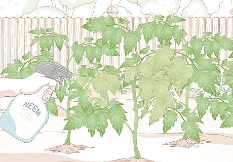 Coat your plants once in neem oil to dissuade other pests as well. Neem oil is a natural pesticide that comes from the neem tree. It comes in a spray bottle and can be purchased at your local gardening store. Neem oil works a lot like summer oil in the sense that it protects plants, but it will repel other predators as well. To use neem oil, pick up a bottle and spray it all over your plants. Let it dry on the leaves to coat them in the oil. Neem oil isn’t a great idea if you’re trying to attract ladybugs to your garden. They tend to hate neem oil as well. One neem oil application should be enough for each growing season.