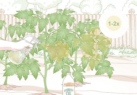 Cover plants in summer oil 1-2 times during the warmer months to keep mites off. Summer oil, also known as horticultural oil, is a natural oil that will keep mites off of your plants. Pick up some summer oil at your local gardening store. Spray it on to your plants by using the widest nozzle setting. After using your summer oil, allow it to dry on your plants. The dried oil will act as a protective cover for your plants. Don’t forget to coat the underside of your leaves. You can use dormant oil to protect your plants in the winter months, but that shouldn’t be necessary if you don’t have an active infestation. More than 2 applications will be overkill. If you want to apply oil twice, wait a week before adding your second application.