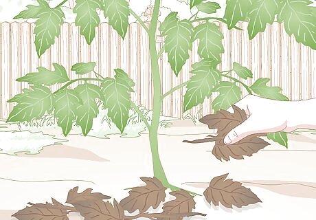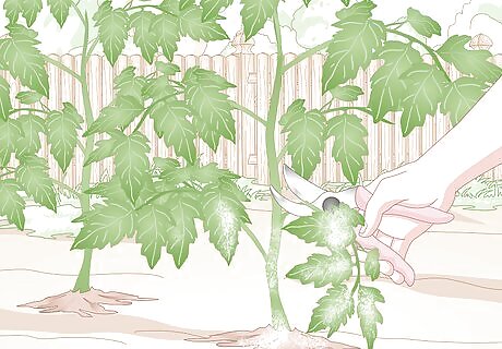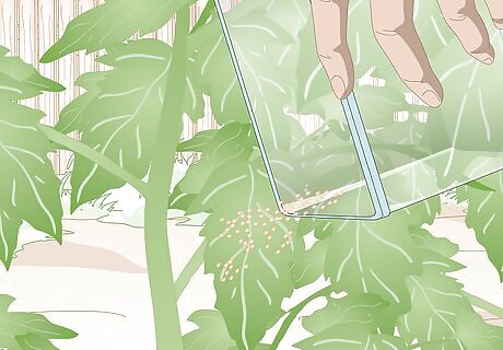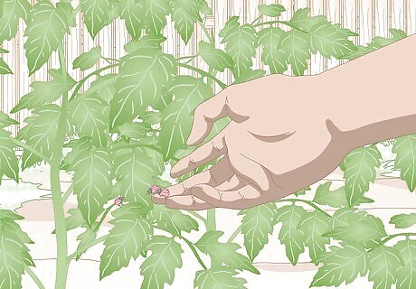 Remove dead leaves and plant debris from the soil around your plants. Mites will often nest underneath the debris that falls off of plants. Inspect your garden and house plants regularly to look for leaves that have fallen off. Remove them and throw them out every day to keep mites from finding a place to call home. Mites feed on plants and cause leaves and petals to fall off at a faster rate than they normally would. If you find yourself picking up pieces of your plants every day, it could be a sign that you already have mites.