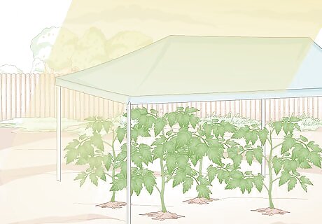 Cover garden plants in the afternoon with a canopy. Use a canopy or plant your plants under a tree to keep them shaded in the afternoon. Most plants need sunlight, but they can usually handle a little shade in the afternoon. Mites prefer to feed in the afternoon, but they require sunny conditions. Covering your plants will make the mites uncomfortable and they’ll likely look for a different set of plants to feed on. Move indoor plants away from the windows in the afternoon to keep them out of the sun. You can also simply set indoor plants up at east-facing windows so that they only get sun in the morning. Move outdoor potted plants to a shady area in the afternoon.