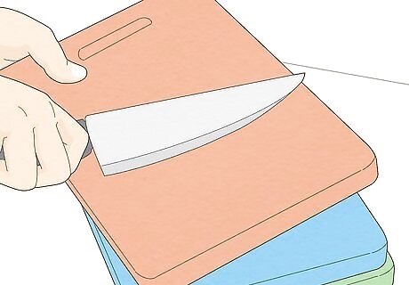 Use separate cutting boards for meat and veggies. Meat harbors germs that can cause food poisoning, so keeping it away from other foods can prevent illness. Unfortunately, cutting up veggies on the same cutting board you use for meat can cause contamination, especially if you eat the veggies raw. Use separate cutting boards to prevent contamination. Washing the cutting board is not enough to prevent cross-contamination.Tip: It’s best to store meat on the bottom shelf of your refrigerator so that it can’t leak onto your other foods. Juices from raw meat can cause food poisoning.