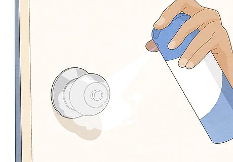 Use a disinfectant to keep hard surfaces in your home clean. Clean your counters, door knobs, and faucets with the disinfectant. Spray the disinfectant onto the surfaces or use a damp towel to wipe them down. This will kill the germs that cause stomach aches, reducing your risk of ingesting them. You can make your own disinfectant by mixing 2 cups (470 mL) of bleach into 1 gallon (3.8 L) of water. Alternatively, you can buy a commercial cleaner.