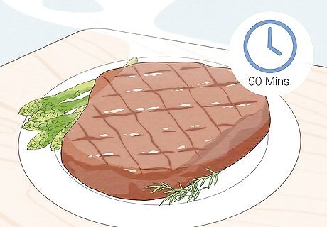 Put food away within 90 minutes of cooking it. If you let food sit out, bacteria will start to grow in it. This can cause food poisoning after you eat it. Store the food in an airtight container, then place it in your refrigerator or freezer. If food has been sitting out for longer than 90 minutes, it’s best to throw it out. Otherwise, you’ll risk getting food poisoning. Meat dishes are more likely to cause food poisoning than dishes that don’t contain meat.