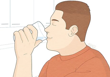 Drink at least 8 cups (1.9 L) of water daily. Being dehydrated makes it harder for your body to digest the food you eat, which may cause a stomach ache. Fortunately, it’s easy to avoid dehydration. Just make sure you’re drinking at least 8 cups (1.9 L) of fluids every day. Try drinking comfortably warm or hot water for extra digestive help. If you’re very active, increase your fluid intake to stay hydrated. Sip on fluids throughout the day to make it easier to meet your goal.
