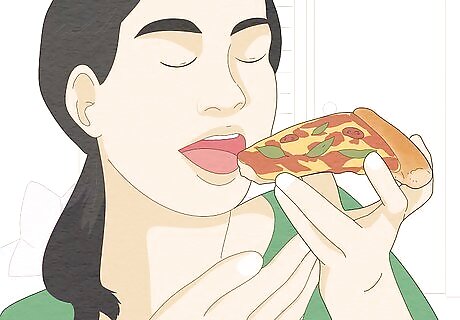 Slow down your meals. Eating too fast can leave you feeling stuffed, which can cause a stomach ache. That’s because you swallow more gas and may accidentally overeat, since it takes 20 minutes for your body to realize it’s full. Slow yourself down by setting your fork down between bites and waiting until you’ve fully chewed and swallowed a bite before you take another one. Don’t watch TV or do an activity while you’re eating. The distraction may make you eat too much and too quickly.
