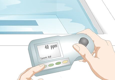 Maintain cyanuric acid levels at no higher than 40 ppm. Cyanuric acid (CYA, also called isocyanuric acid) must be used in outdoor pools to keep the sun from burning off the chlorine. It’s included in the majority of commercial dichlor/trichlor tablets. Although cyanuric acid is a stabilizing ingredient in chlorine that prevents it from being destroyed by the sun, it does so at the cost of reducing the effectiveness of the chlorine. Test the water regularly to check the CYA levels and ensure that the chlorine won't lose its sanitizing ability. At 40 ppm, cyanuric acid will allow chlorine to perform optimally (high levels of CYA contribute to Total Dissolved Solids (TDS) which interferes with chlorine activity). If the CYA is too high, switch to chlorine tablets or sticks that don't contain it until the levels drop an acceptable amount.
