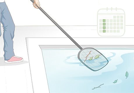 Clean your pool at least once per week. Regularly cleaning your pool helps to remove contaminants like skin, oils, sunscreen, and hair products that disrupt the chemistry of the water. Use a net skimmer to remove bugs, leaves, and other surface debris. Vacuum the pool walls and floor to remove sunken debris and get a deeper clean. Clean the walls and floor of your pool with a pool brush to remove mildew and mineral buildup. Work from the shallow end to the deep end and be sure to clean and empty all the filters when you’re done. To maintain the pool, get a vacuum once a week. The plaster and pebbles cannot tolerate loads of dust. It does wonders for the color of the pool. When you go on a vacation and come back, the color of the water may be Tahoe blue or have a grayish tint. But when you turn on the vacuum, you can see streaks, and the pool becomes blue again. It is not expensive. Most vacuums cost less than $200.