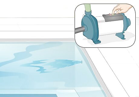 Run the pool pump at all times if possible. Properly circulating the water is essential for maintaining the chemistry in your pool. Let the pump run continuously so the water stays clean and chemicals like chlorine are evenly dispersed. If you can’t keep the pump on all the time, run it at least 10 hours per day. Be sure to backwash your filter regularly so the contaminants travel out of your pool and into the waste port.