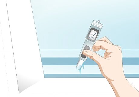 Adjust the chlorine levels if they are above or below 1-3 ppm. Chlorine is measured in parts per million, or ppm. If the levels are lower than 1 ppm, there may be harmful bacteria lurking in the water. Conversely, if the chlorine levels are too high, you might experience skin and eye irritation.Variation: Chlorine is the most widely used pool sanitizer, but there are other options available, including bromine and ozone as well as sanitizing systems such as ionization and ultraviolet irradiation.